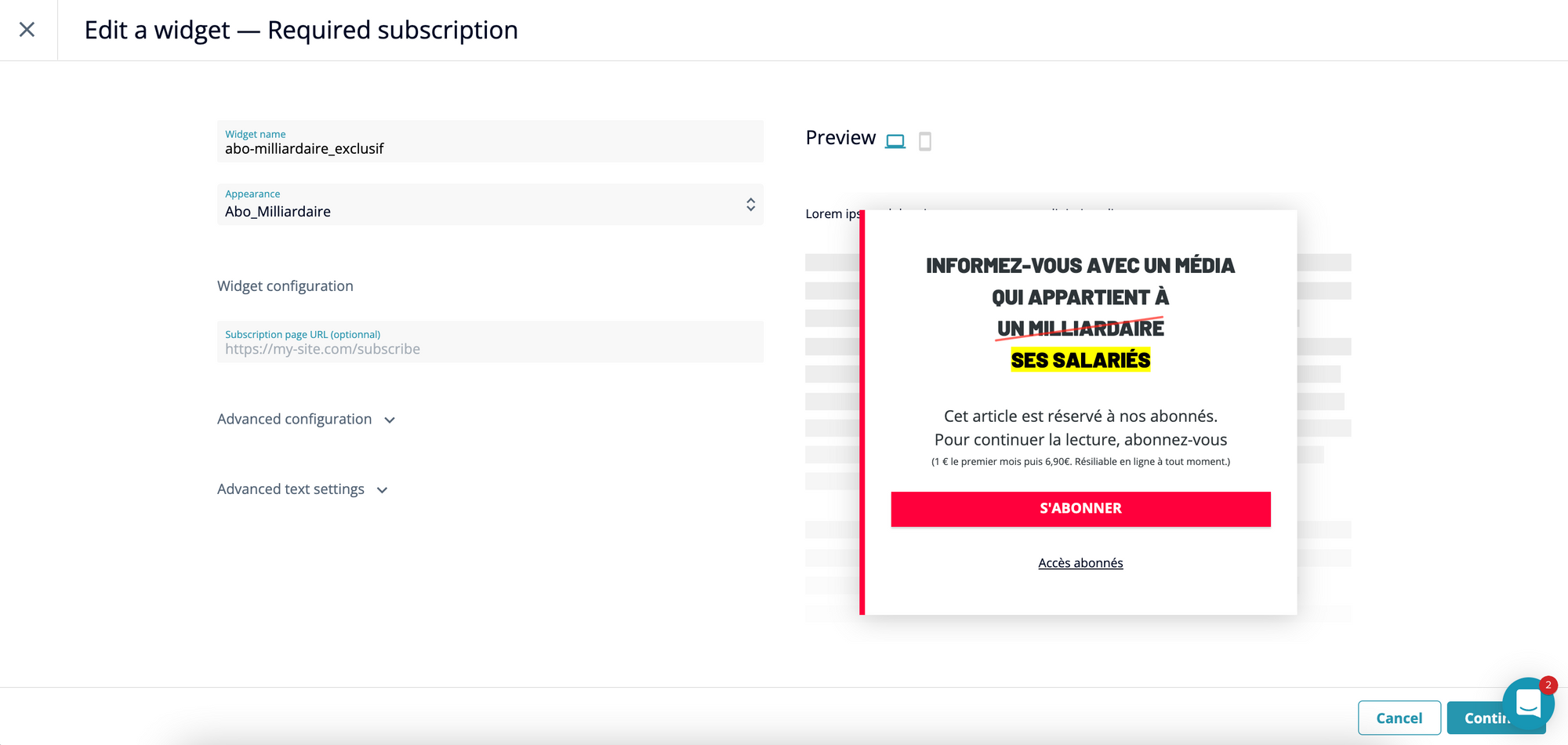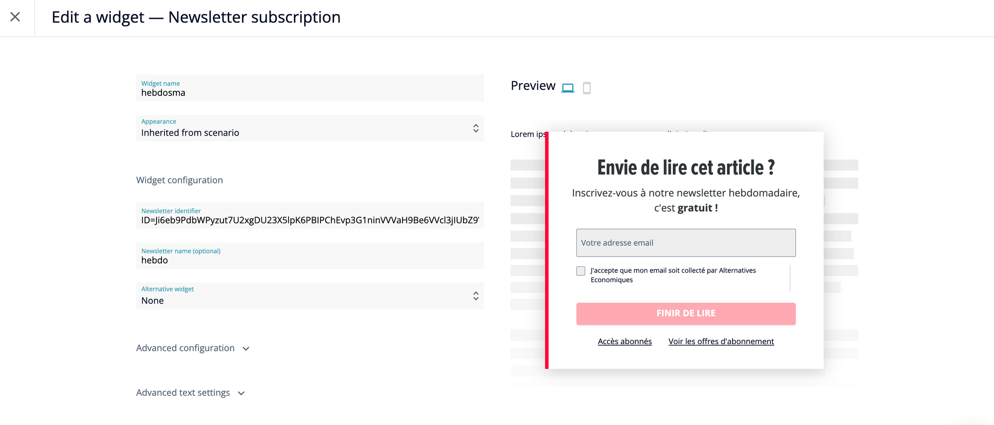 Thanks to Poool’s Dashboard, Alternatives Économiques was able to test out these two scenarios with ease, configuring the design, wording, steps in the journey as well as what percentage of their audience were presented with each version.