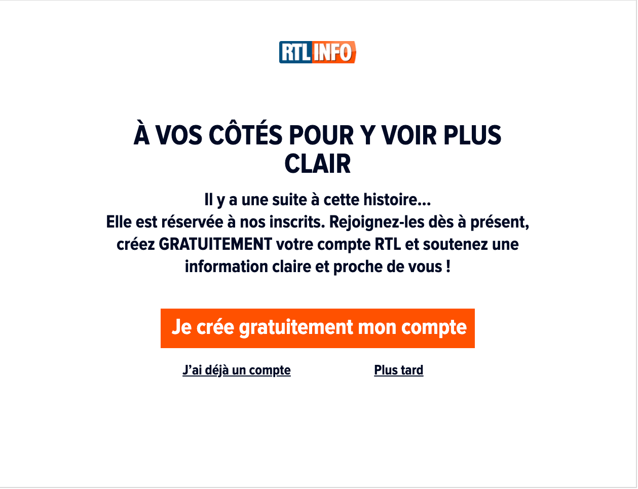 RTL INFO have significantly reduced the risks involved in blocking content with a wall by making their registration wall optional.