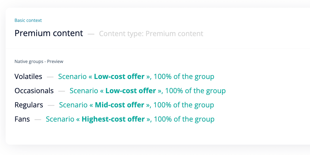 Segmentation is based on the content type with the dynamic element being the paywall value proposition.