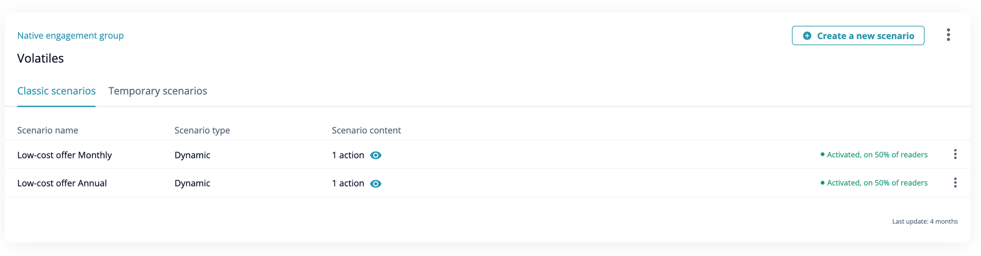 - Volatiles (least engaged)