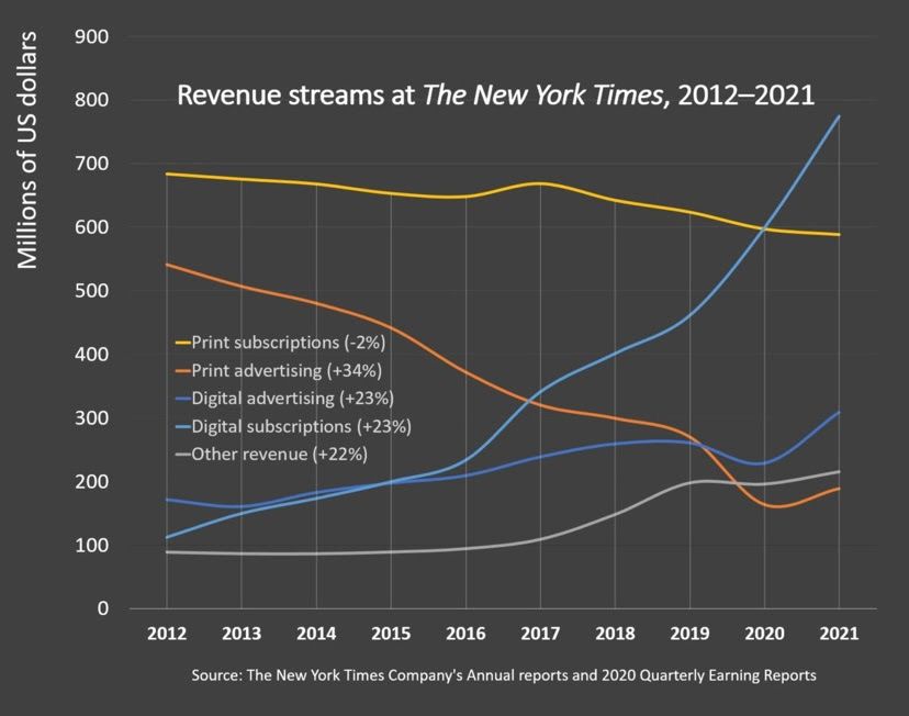 The New York Time's annual reports are out for 2012-2021 as they hit their goal of 10 million subscribers: