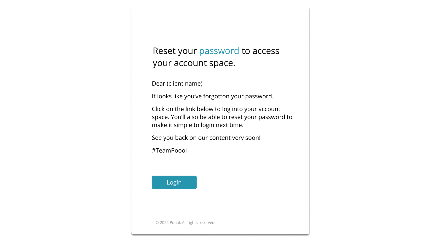 A member has forgotten their password? Donāt fret, emails are sent automatically via the Dashboard to allow a user to reset their password.