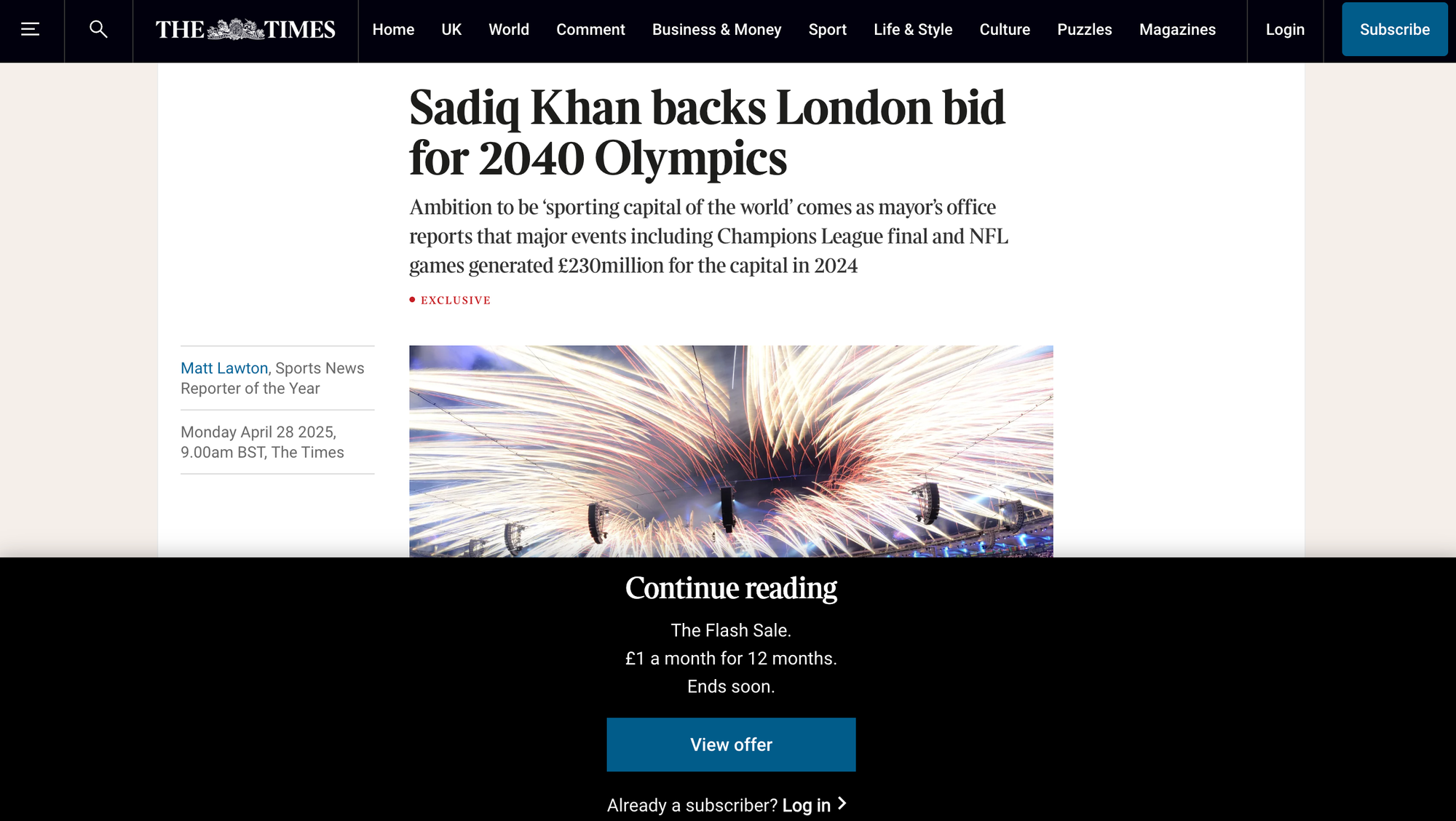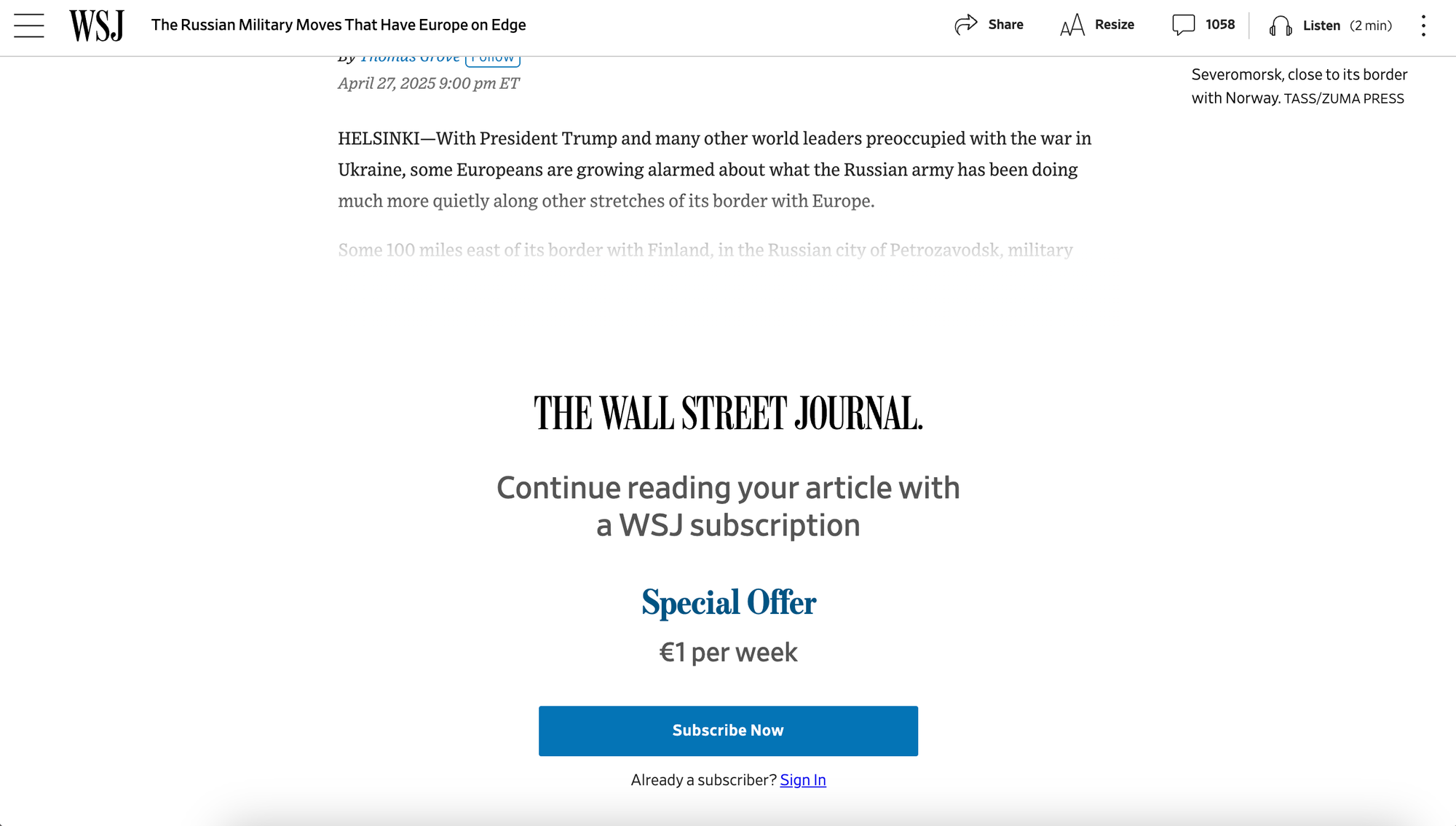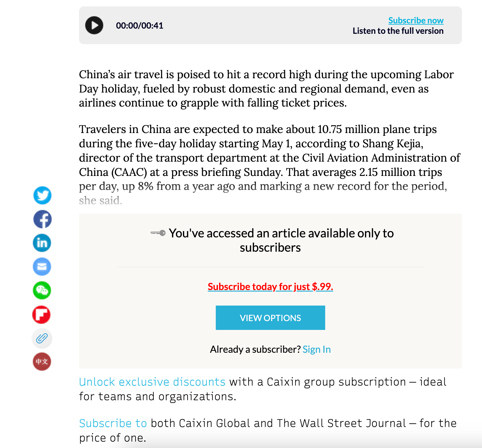 - Type de wall : Mention "For subscribers only" dans le corps de l'article, entre deux paragraphes, sans blocage durant nos tests depuis la France