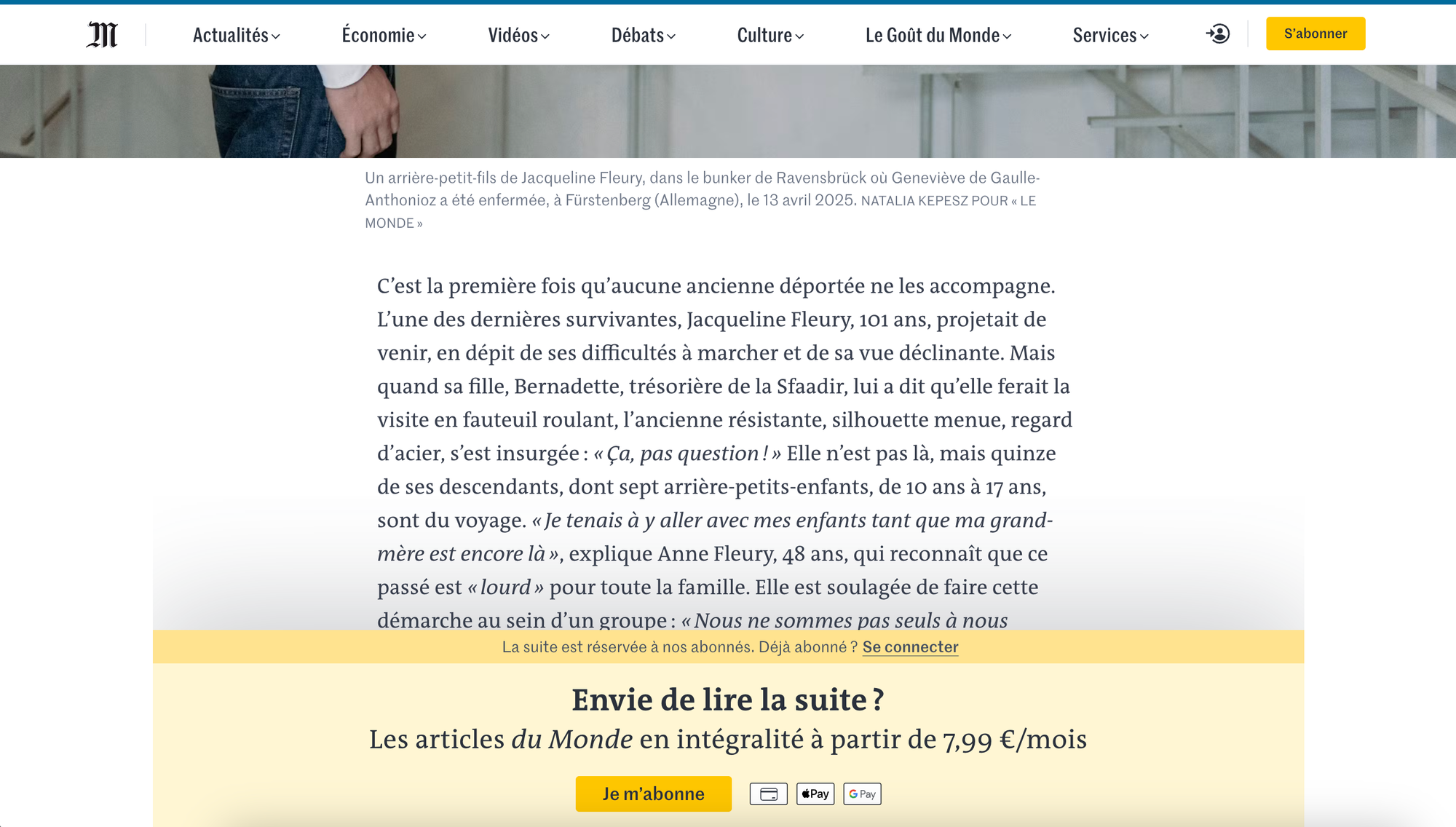 - Type de wall : Paywall dans le corps de l'article, ne bloque pas le scroll