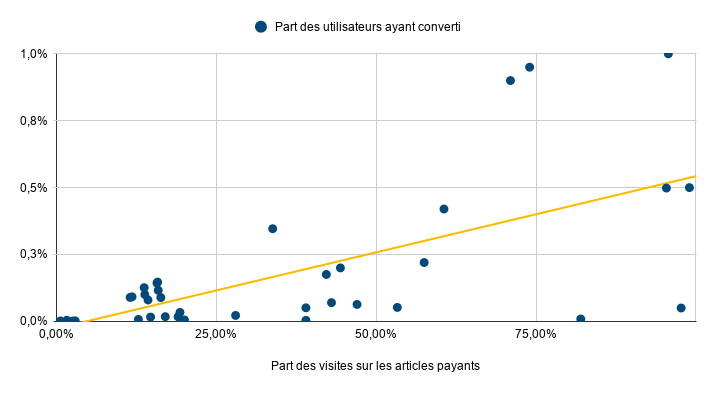 - L'importance de mesurer le trafic sur les contenus payant, notamment car les conversions sont en partie corrélées à la visibilité des contenus payants.
