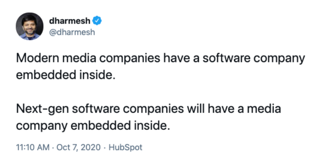 Dans tous les exemples analysés, Kieran Flanagan, le VP Marketing de Hubspot déjà cité en introduction, est celui qui a le plus expliqué sa stratégie. Par passion ou parce qu’il cible les directions marketing, ou un peu des deux. Il a également pris le temps de répondre à des commentaires sur son compte LinkedIn pour expliquer la stratégie : oui, The Hustle va continuer à exister. Mais oui, aussi, la qualité éditoriale et les contenus produits par The Hustle vont être utilisés pour enrichir l’expérience proposée par Hubspot (qui compte déjà une académie, un réseau de podcasts…).