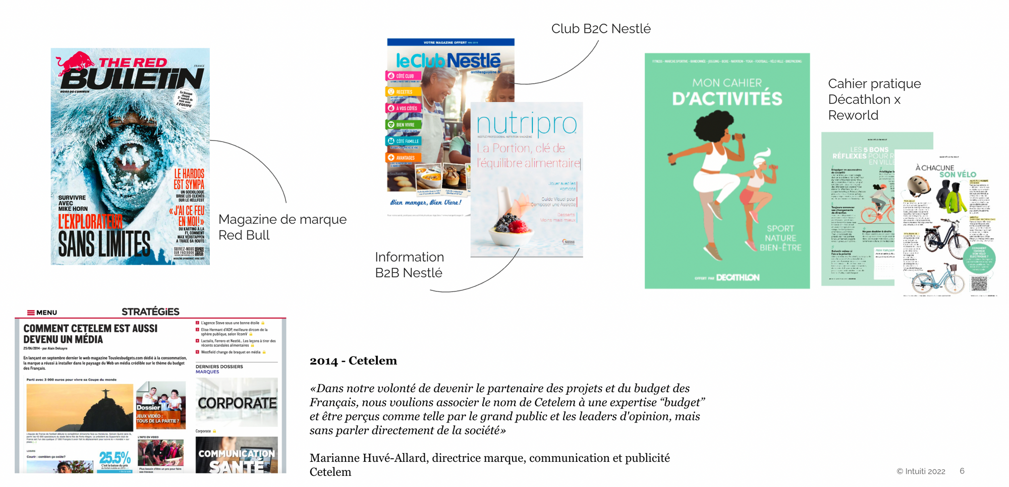 - La marque détermine et développe un outil industriel pour le produire (impression de magazine papier dédié, création d’un CMS pour intégrer les productions, etc).