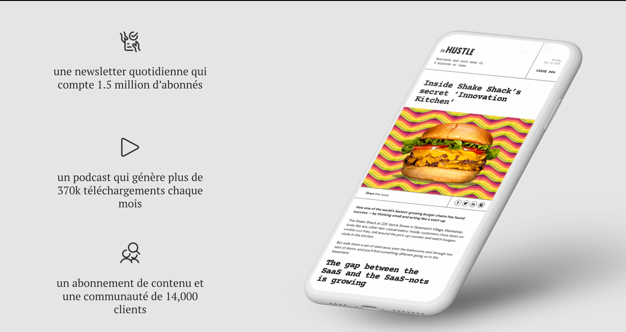 Dans le communiqué transmis à la presse et dans un long et passionnant article publié sur le blog de Hubspot, Kieran Flanagan, le VP marketing de l’entreprise, expliquait le choix de racheter la newsletter marketing quotidienne The Hustle, adressée à plus de 1,5 millions de personnes. Pour un montant estimé à 27 millions de dollars.