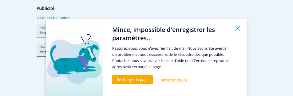 Parallèlement, les erreurs de formulaires ont également été travaillées. Elles existaient déjà, mais elles intègrent maintenant les solutions possibles et un pont vers l’aide de Poool. Certes, un point en moins pour la concision, mais un point en plus pour la clarté ! 😉