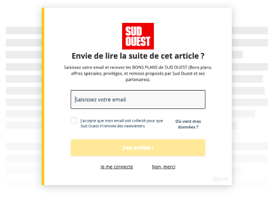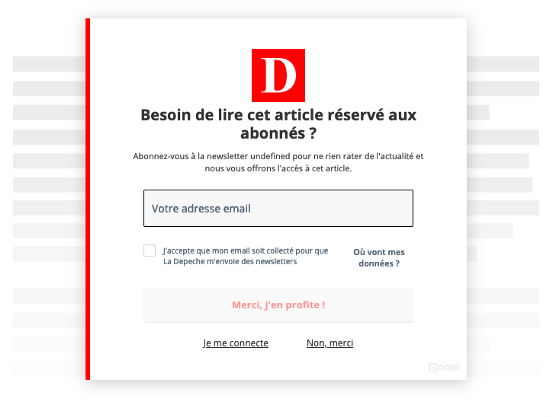 - Couleurs pertinentes : le choix des couleurs est capital pour véhiculer un message. Mais attention pour des raisons d’accessibilité, la couleur ne doit pas être le seul vecteur de cette information ! Chez Poool, nous avons l’habitude de styliser nos composants selon les couleurs de nos clients. Pour le widget Formulaire, nous avons pourtant opté pour la neutralité d’un noir, afin de nous assurer que les rouges, oranges et jaunes, souvent utilisés dans les univers de marque des médias, ne soient pas repris dans les champs de formulaire et interprétés comme des erreurs par les lecteurs.