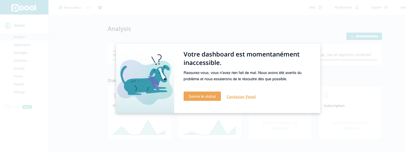 Dans notre startup, on est les premiers à plaider coupables : après avoir focalisé notre énergie sur un gros travail de refonte de notre produite-phare (le paywall dynamique Poool Access) ainsi que sur la conception de nouveaux produits ces derniers mois, il était vraiment temps d’attaquer l’optimisation de notre gestion des erreurs sur le Dashboard éditeurs.