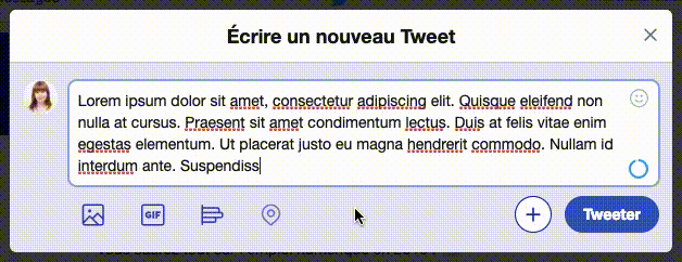 - L’avertissement. Quand le système détecte qu’une erreur va probablement arriver, avertir l’utilisateur pour qu’il en ait conscience et adapte son utilisation. Le compteur de caractères sur Twitter ou les notifications de suggestion d’enregistrement sont des exemples d’avertissement.