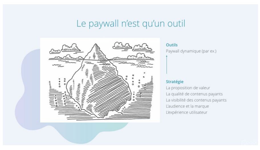 Lorsque l’on parle du développement des abonnements digitaux, on pense souvent aux systèmes de paywall, qu’ils soient appelés “dynamiques” ou “intelligents”. Les paywalls sont en effet des outils importants pour les éditeurs : ils sont au cœur de la relation entre le lecteur et le contenu. Ils vont donc avoir un impact important sur toutes les questions de monétisation de l’audience, que ce soit la monétisation publicitaire ou la monétisation liée à la vente de contenus (à l’article, pass 24h, abonnements digitaux, etc.). Cependant, quand on parle de conversion des lecteurs en abonnés, les paywalls ne sont que la partie émergée de l’iceberg !