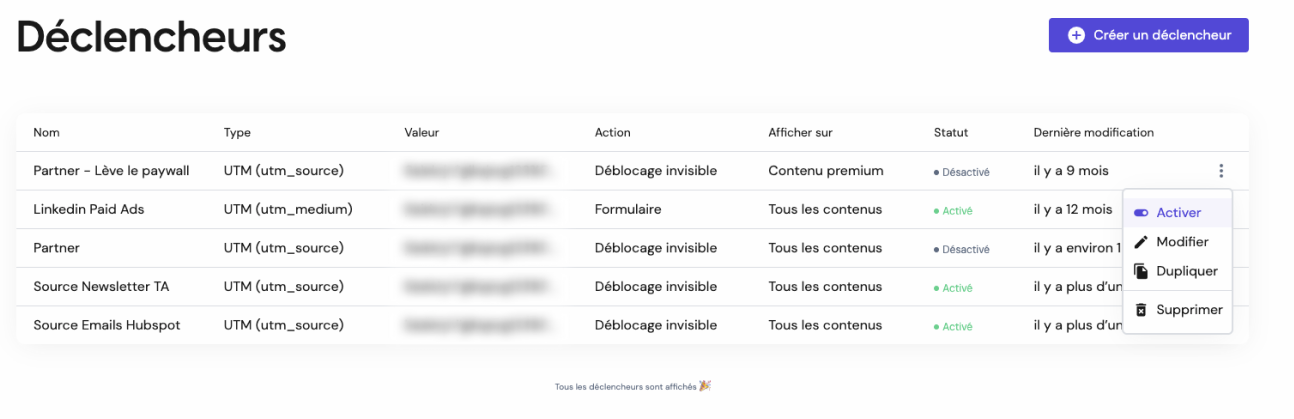 Il est désormais possible d'activer ou désactiver un déclencheur afin de proposer un wall spécifique à vos utilisateurs qui proviennent d'une source particulière.