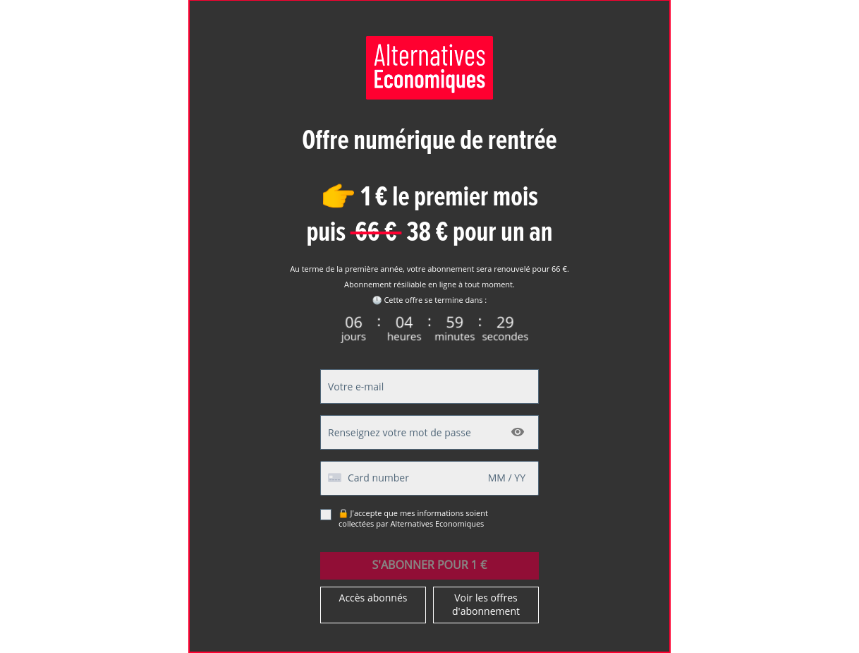 How about going one step further and adding payment into the paywall? This takes out yet another step and speeds up the process making it even quicker and easier for your reader to get back to the content. Alternatives Economiques, one of Poool's clients, increased conversion rate by 40% with this technique!