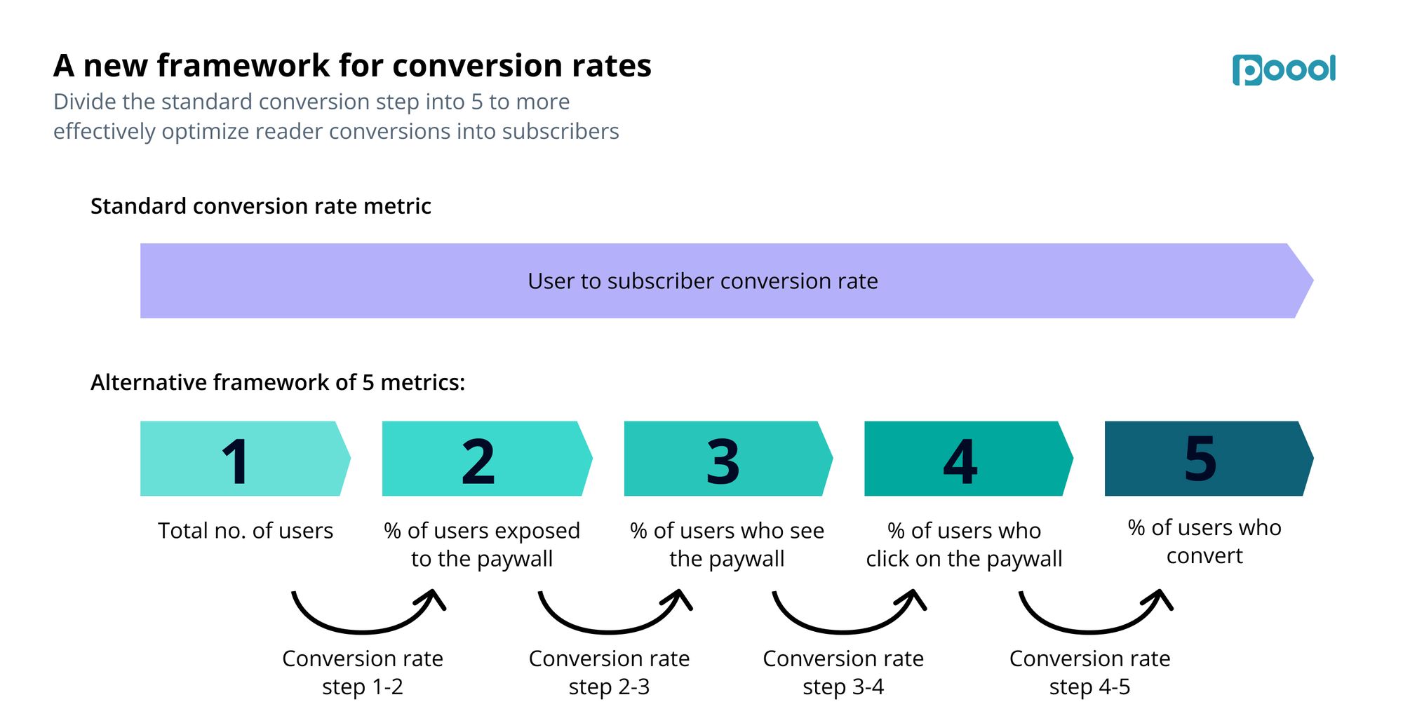 In short, we shouldnât! This really isnât optimal for publishers. Hence why weâve developed a revised framework, made up of 5 steps, starting with all users who visit your site and working through the funnel towards the paywall.