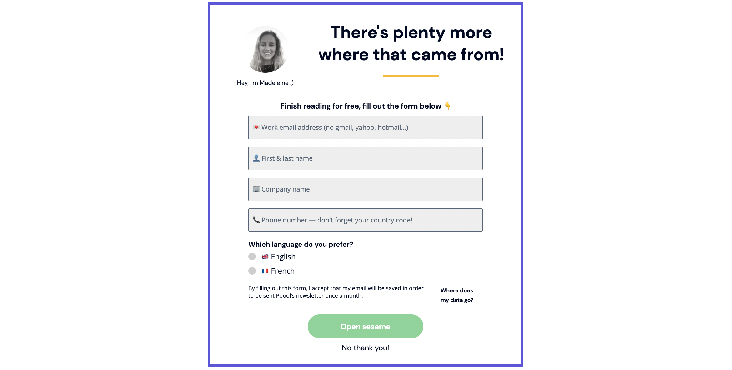 Bio à la Une did this in the form of a data wall, informing readers that they’d soon be launching a premium offer and asking them to register their interest by signing up to the newsletter.
