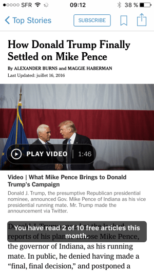 We observed some differences on the navigation and the display of the paywall according to the supports. The experience on the mobile application is globally more fluid and less intrusive, probably because the mobile represents a part of the future of the NYT; The experience must be treated, and must maximize the commitment of the reader.