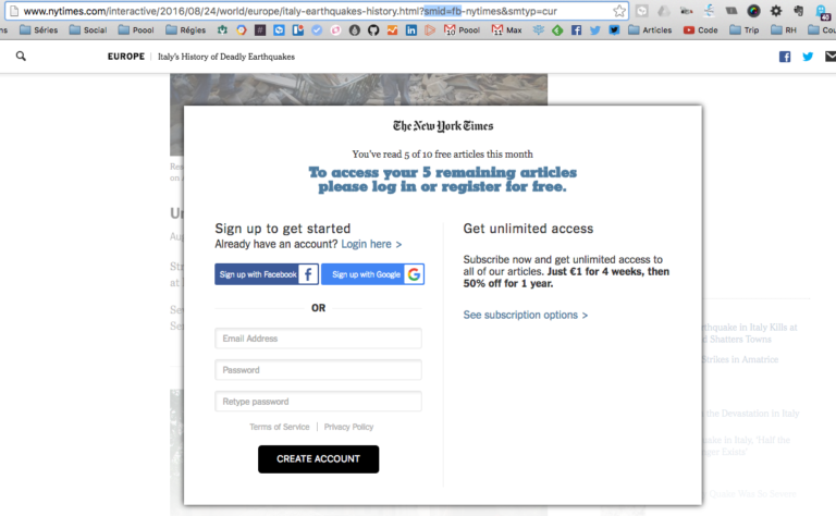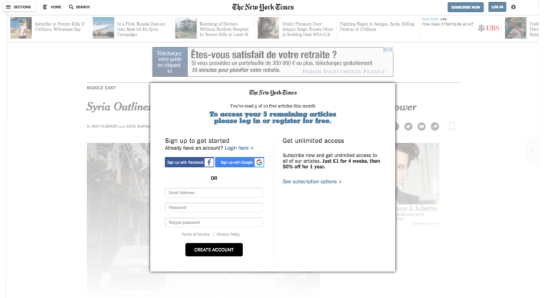 But how does the New York Times paywall work? What are the key steps? What is the user experience? Are there differences according user profiles? So many topics that we will try to address in this article.